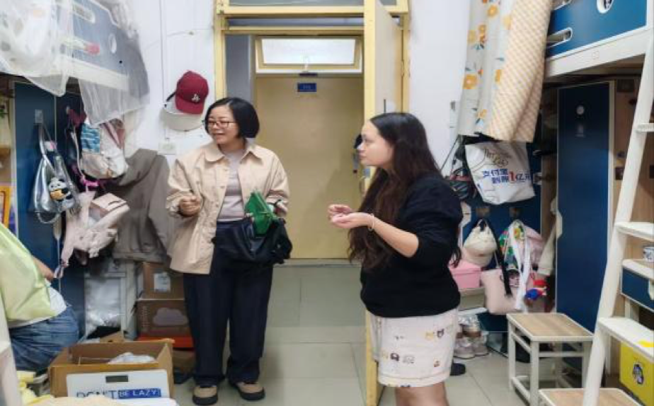 活动第一项,我院团总支、学生会成员于中午12:00在梨园小区门口集合,与我院领导共同前往不同的新生宿舍对其进行走访活动。